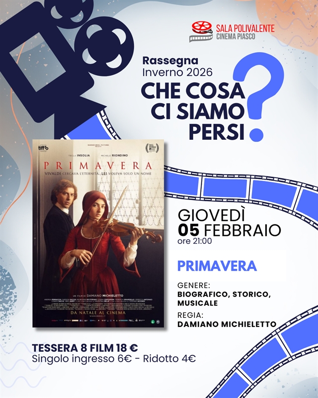 Si comincia giovedì 5 febbraio con Primavera, un intenso film storico-musicale ambientato nei primi anni del Settecento a Venezia, in cui l’arrivo di un giovane insegnante rivoluziona la vita delle giovani musiciste dell’orfanotrofio della Pietà e apre a nuovi orizzonti di libertà e creatività per la protagonista.