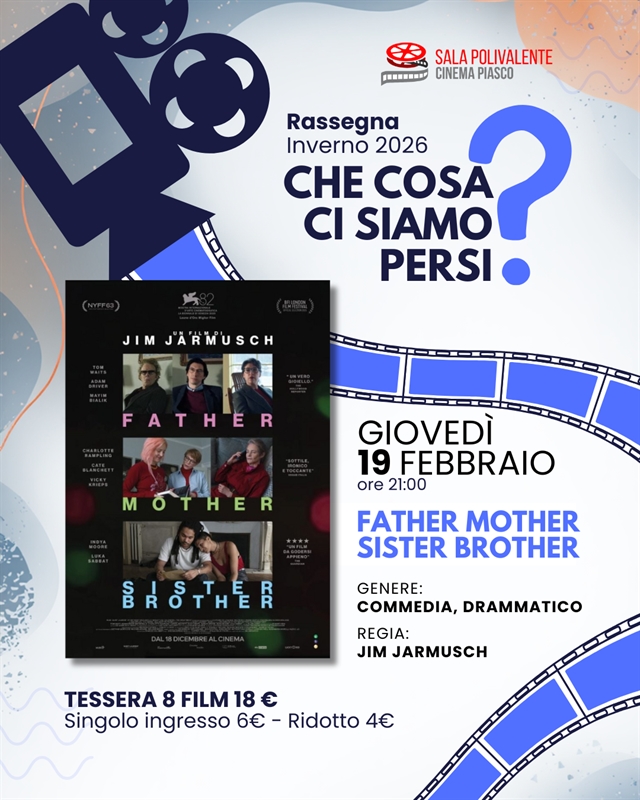 Il viaggio prosegue giovedì 19 febbraio con Father Mother Sister Brother, un film dal taglio originale diretto da Jim Jarmusch che intreccia tre storie ambientate in Stati Uniti, Dublino e Parigi, esplorando i conflitti, le distanze e i legami profondi che caratterizzano i rapporti tra fratelli e genitori attraverso un cast internazionale.