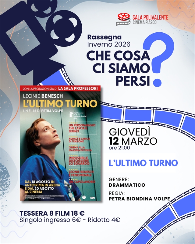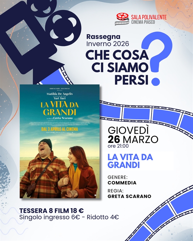 La Sala Polivalente di Piasco conferma così il suo ruolo di luogo di aggregazione culturale, dove il cinema diventa strumento di conoscenza, emozione e dialogo.